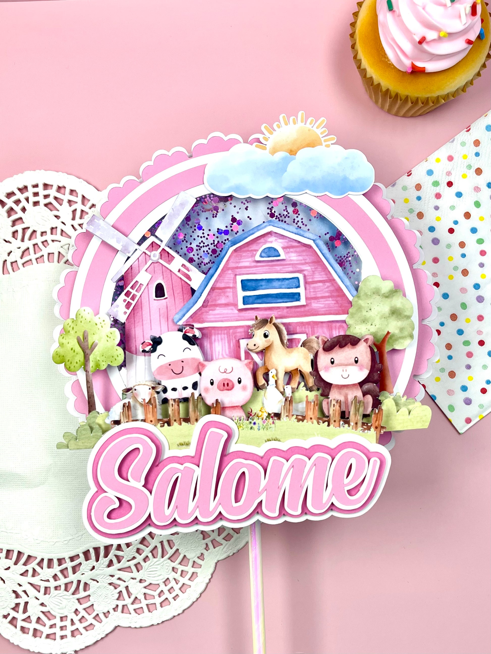 Personalized and Farm Animals Cake Topper with Name | Barnyard Birthday Party Decoration | Custom Farm Theme Kids Party Supplies