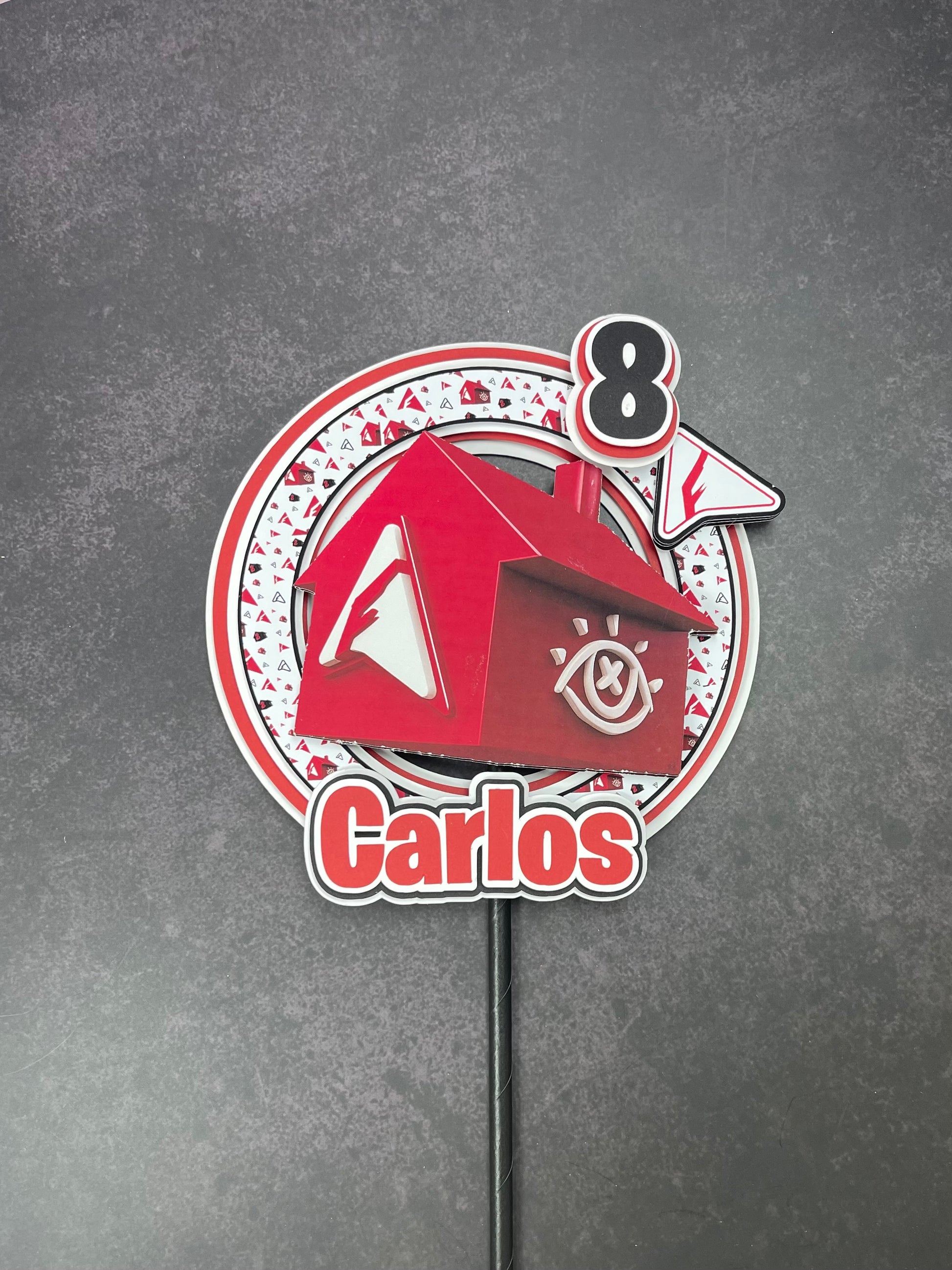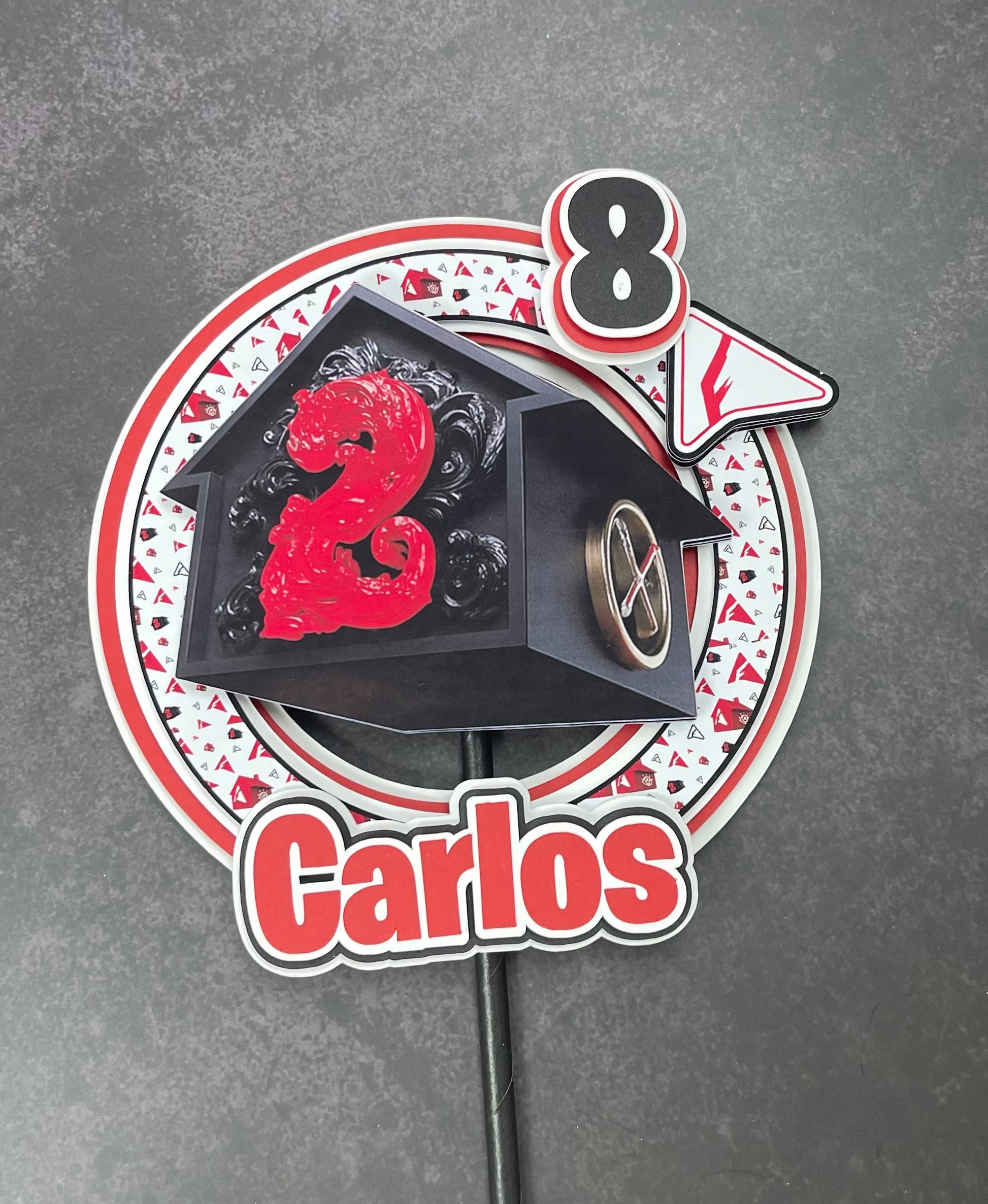 Reality House Style 3D Cake Topper – Casa Roja – Nombre y Edad Personalizados – Urban Theme Birthday Decoration
