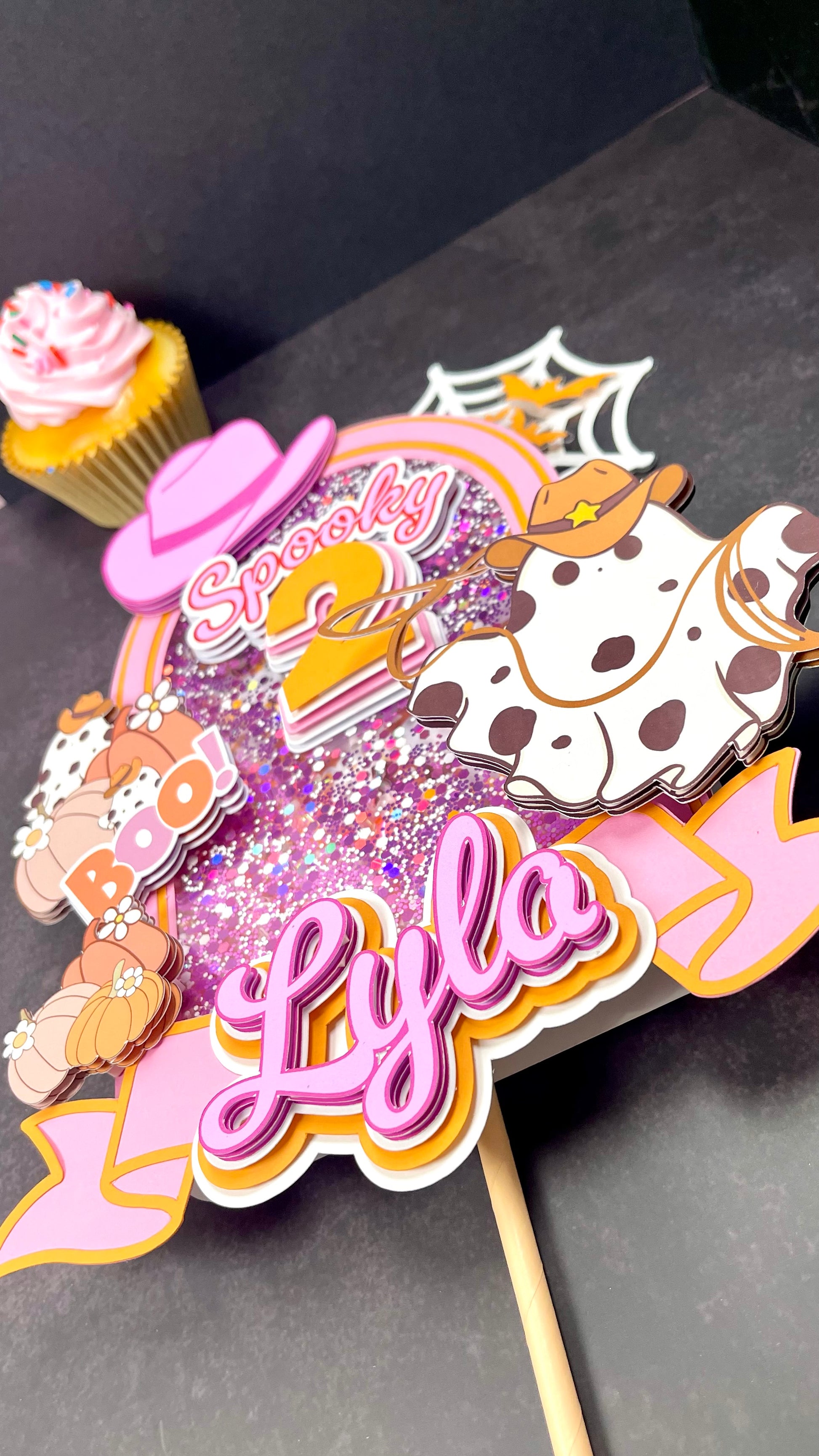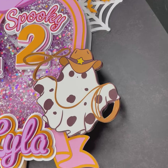 Spooky Cowgirl Birthday Cake Topper – Halloween Cowgirl Party Decor, Pink Western Birthday Topper, Personalized Name Cake Decoration